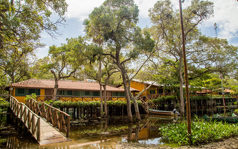 O Pantanal Jungle Lodge está localizado na Estrada Parque Pantanal Sul às margens do Rio Miranda. A pousada foi construída em madeira sobre palafitas para assim se adaptar perfeitamente ao belo ciclo das águas típico do ecossistema dessa região, respeitando o meio ambiente e promovendo o equilíbrio entre o homem e a natureza. Especializada em ecoturismo oferece os serviços de hotelaria e atividades turísticas para que você e sua família possam contemplar as belezas do Pantanal agregando o rústico pantaneiro ao conforto da vida moderna. O acesso terrestre é feito durante o ano todo pela famosa “Estrada Parque Pantanal” apreciando toda a exuberância da fauna e flora pantaneira. Ao percorrer a estrada tenha cuidado com os animais silvestres, que podem atravessar a pista. Possui um apartamento adaptado para cadeirantes. Atividades oferecidas: cavalgada, canoagem, passeio de lancha ao entardecer com focagem noturna, flutuação, passeio de barco, safari fotográfico, caminhada ecológica e pesca artesanal de piranhas.
